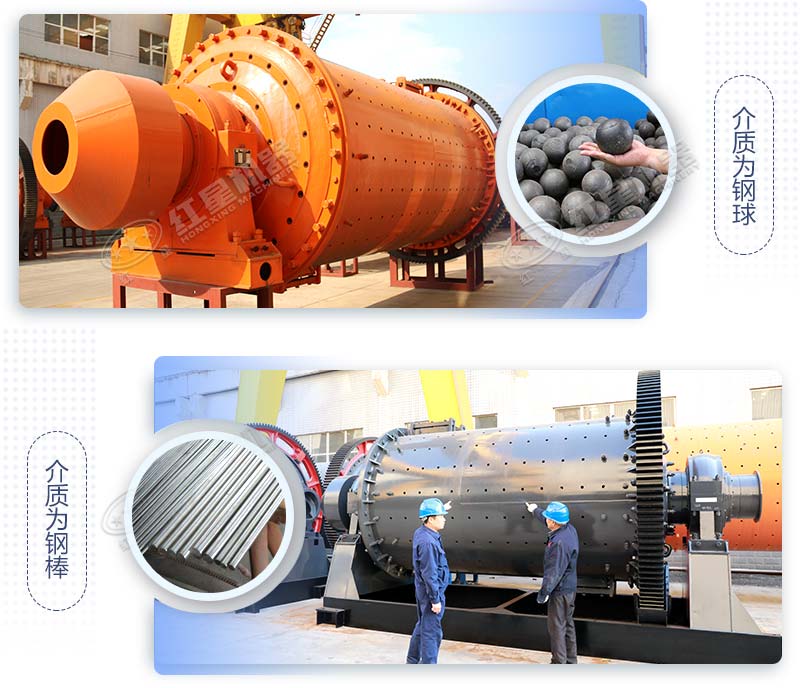 鋼渣球磨機研磨介質為鋼球,鋼渣棒磨機研磨介質為鋼棒,以點接觸改為線接觸,并可根據鋼渣特性配用合適的研磨鋼棒。該設備研磨出料粒度更均勻,產量更好。