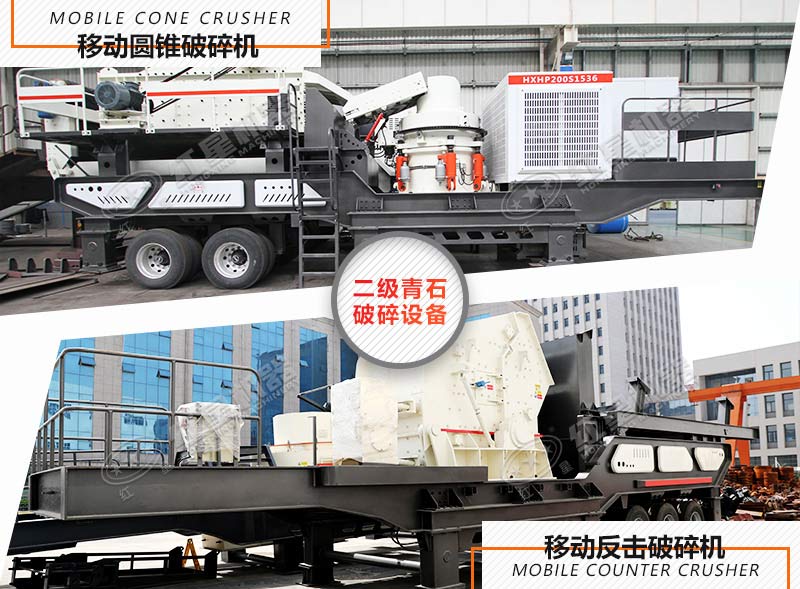 二級破碎設備-移動反擊破碎機、移動圓錐破碎機