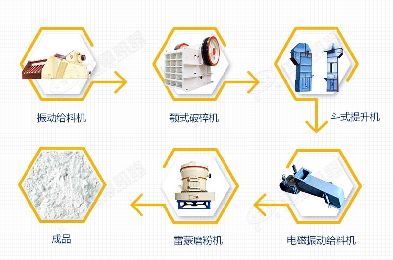 整體來講,200目石灰石粉生產(chǎn)線所采用的全套設(shè)備有小型顎式破碎機、提升機、電磁振動給料機、石灰石磨粉機等,由于石灰石磨粉機內(nèi)部裝有選粉裝置,因此不需要外部的選粉機,流程工藝簡單,設(shè)備組成也更簡潔。