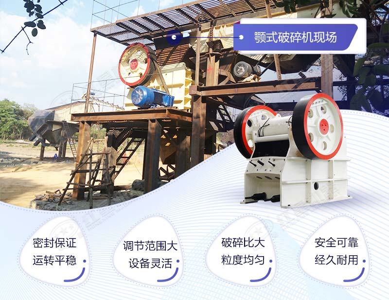 該pex250*750顎破設備結構特殊緊湊,特殊的顎頭結構,密封保證,延長軸承壽,特殊飛輪設計,有效減少震動,機器運轉更平穩(wěn);接著是排料口的調整裝置采用墊片式,調節(jié)范圍大,設備靈活;然后,破碎腔深并且無死區(qū),破碎比大,產品粒度更均勻;最后要數整體鑄造,采用全新的裝配工藝,與機架相互配合,安全系數高。這是該顎式破碎機pex250*750的結構優(yōu)勢。