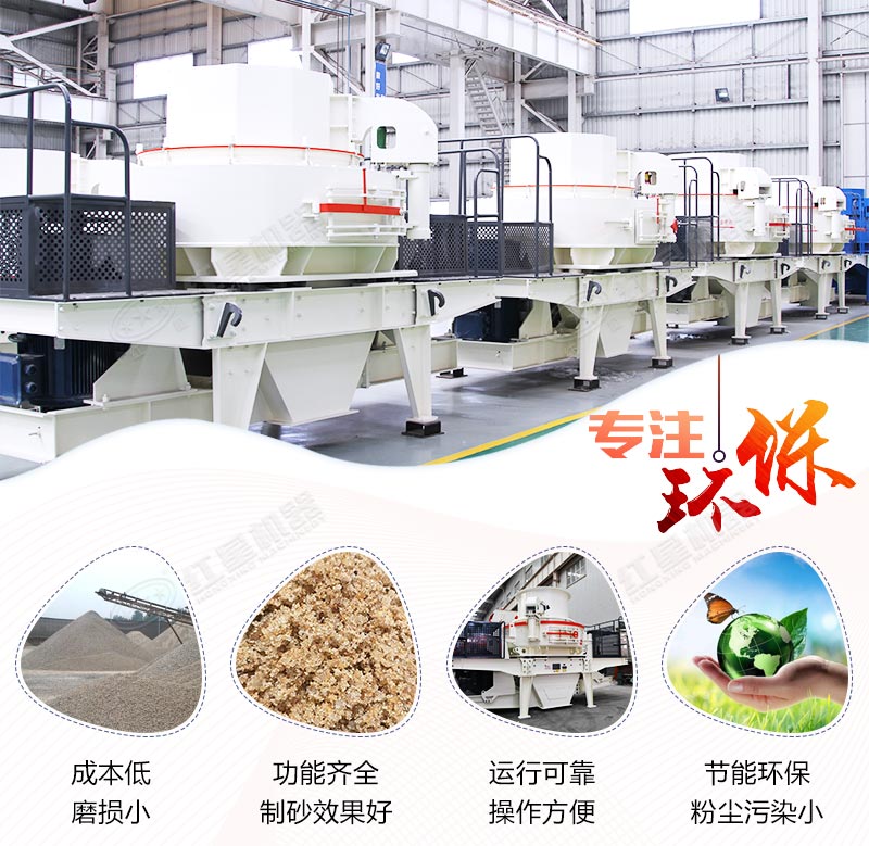 制沙設(shè)備的制砂過程中,主要是將物料放入破碎腔內(nèi),由破碎部件進(jìn)行敲打、沖擊、研磨等方式。使物料制成所需粒度,由排料口排口,即為成品。在整下破碎過程中,物料相互自行沖擊破碎,不與金屬元件直接接觸,而是與物料襯層發(fā)生沖擊、磨擦而粉碎,這就減少了角污染,延長機械磨損時間,提高整機壽命。
